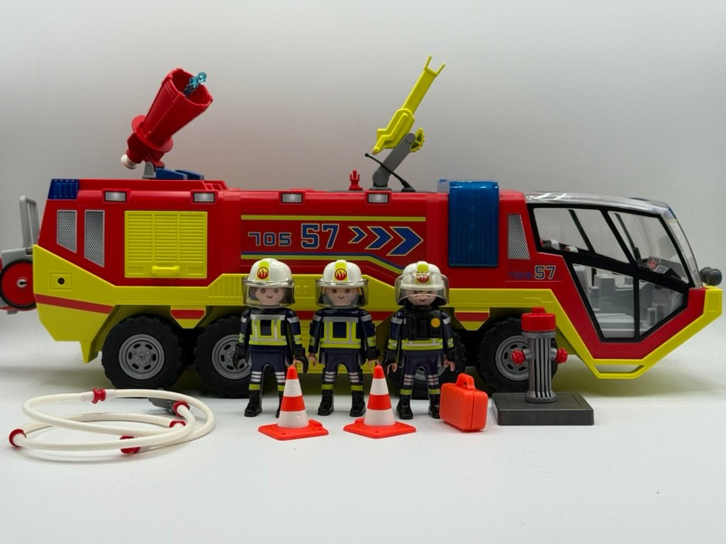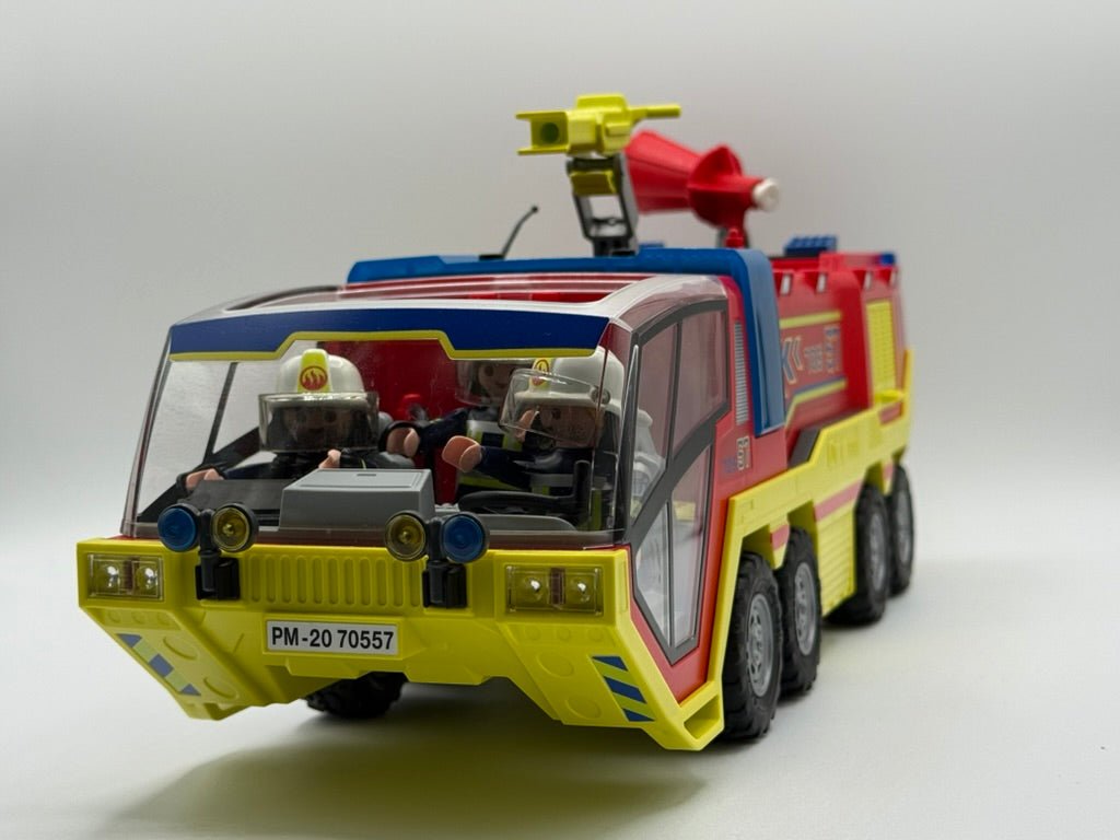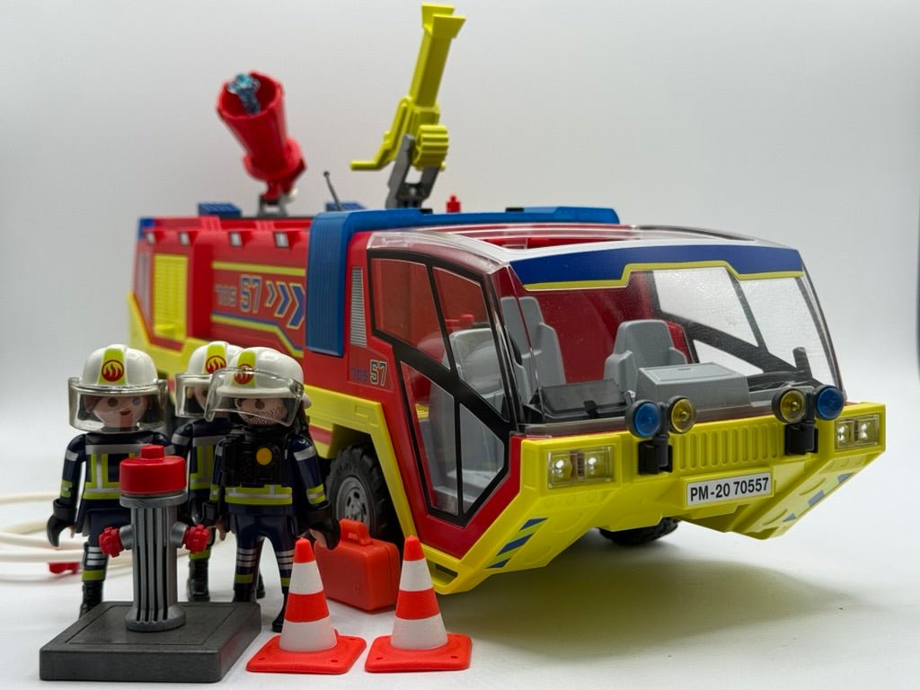 Alarm auf dem Flughafen! Ein Notruf reißt die Ruhe auseinander – Rauch steigt auf, Sekunden zählen. Das PLAYMOBIL Flughafen-Feuerwehrfahrzeug rast mit Blaulicht über das Rollfeld, bereit für den nächsten Feuerwehr-Großeinsatz. Mit drehbarer Wasserkanone, ausfahrbarer Ausrüstung und einem eingespielten Feuerwehr-Team wird jeder Brandherd bekämpft. Ob Triebwerksbrand, Notlandung oder Gefahrgut-Einsatz: Dieses PLAYMOBIL Feuerwehr Spielset bringt actionreiche Abenteuer ins Kinderzimmer und sorgt für realistischen Spielspaß. Perfekt für kleine Einsatzleiter, die Feuerwehrfahrzeuge, Rettungseinsätze und Abenteuer-Rollenspiele lieben.